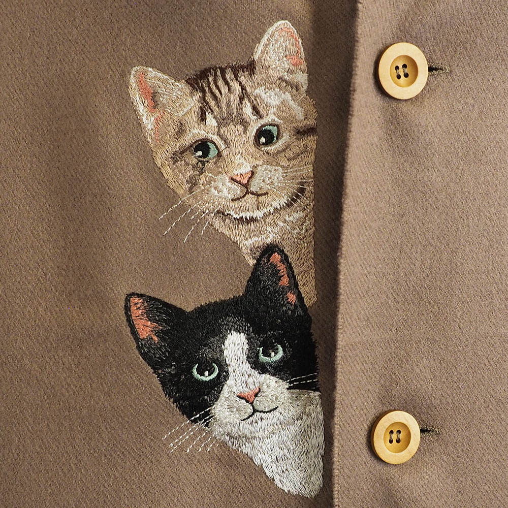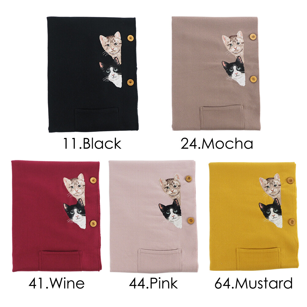 刺繡貓咪手工細緻,左右兩邊有口袋,5隻色都非常吸引。😍😍😍
