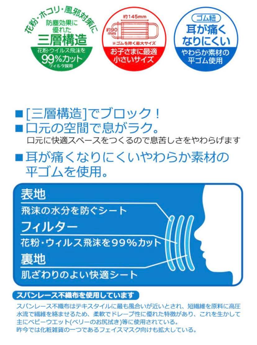 ✅3層結構有效阻擋99% 花粉、病毒、飛沫
