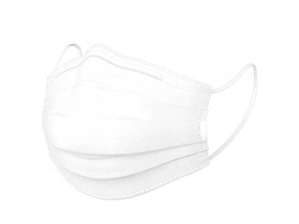 三層結構的無紡布口罩,透氣性好。內置鼻部貼合件。不含乳膠。使用不會傷害耳朵的軟橡膠。不易產生縫隙的三維緊密接觸結構